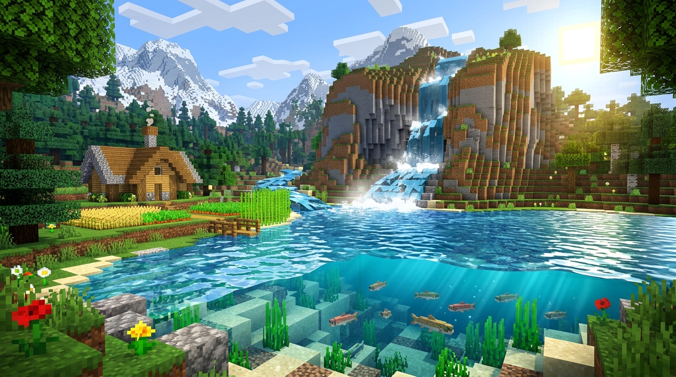 At the beginning of a world, water helps you grow crops, survive falls, and deal with lava. Later, it becomes the backbone of transport systems, bubble elevators, underwater bases, automated farms, and advanced building projects. Water is not just scenery or a survival convenience—it is infrastructure.